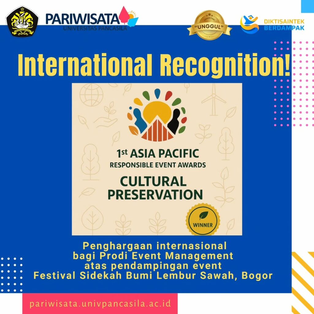 Rekognisi Kelas Dunia! Prodi Event Management Pariwisata UP berhasil meraih penghargaan internasional Cultural Preservation Winner pada ajang Asia Pacific Responsible Event Awards atas pendampingan event Festival Sidekah Bumi di Desa Wisata Lembur Sawah, Bogor. Diinisiasi oleh Asia Pacific Institute for Event Management (APIEM), ajang tersebut diikuti oleh pelaku industri dan kampus ternama dari wilayah Asia Pasifik pada 22-24 Mei 2025 di Bali. Penghargaan tersebut menunjukkan bahwa dosen dan mahasiswa memiliki kompetensi dan skill pengelolaan event yang berstandar internasional dan selaras dengan pencapaian SDGS. Congrats!