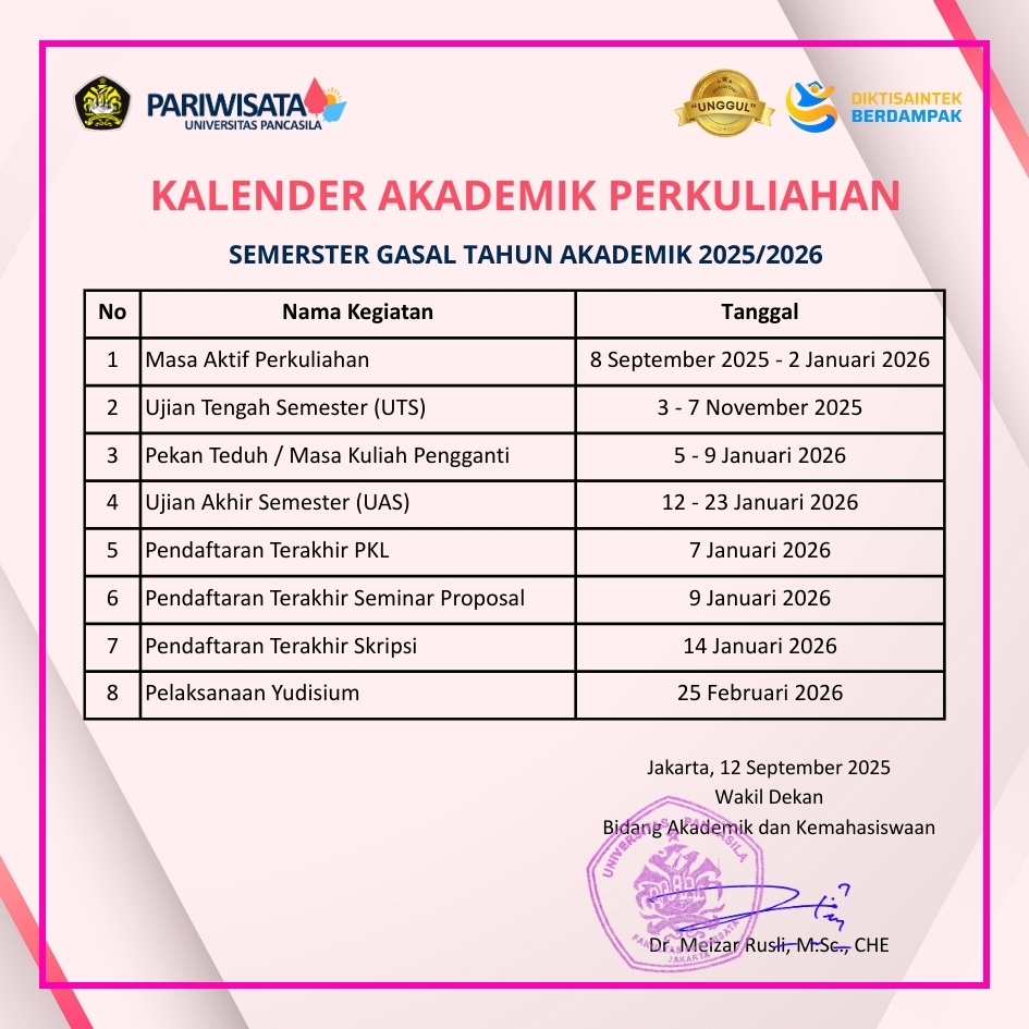 Kalender Perkuliahan TA. 2025-2026 Semester Gasal