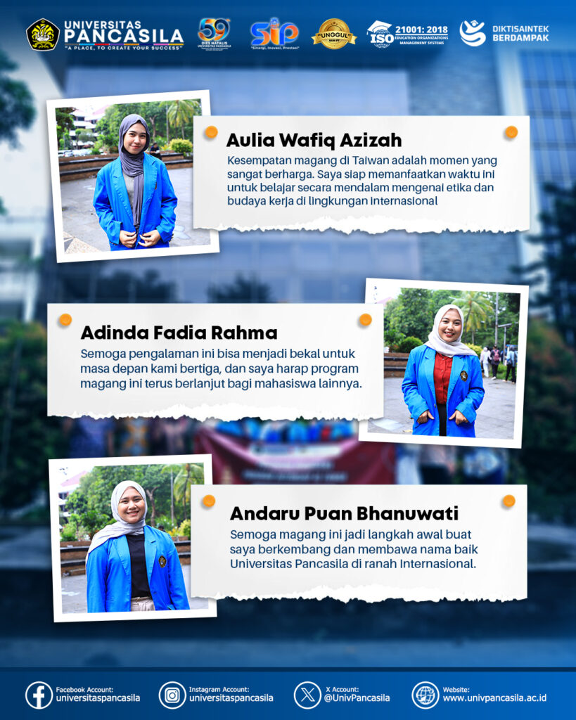 Program magang ini merupakan hasil kerja sama antara Universitas Pancasila dengan Zhong Heng Management dan Yu Zhong, yang selama ini menjadi mitra strategis dalam penempatan mahasiswa di berbagai industri perhotelan di Taiwan.