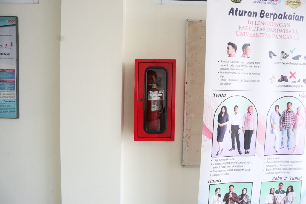 Fasilitas Laboratorium Komputer Laboratorium Event Project Ruang Sidang Skripsi / Proyek Akhir dan PKL Perpustakaan Aula Fakultas Pariwisata Ruang Kelas Alat Pemadam Api Ringan Jalur Evakuasi & 2 Tangga Navigasi Ruangan